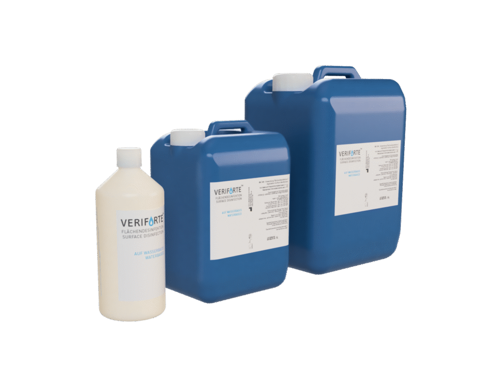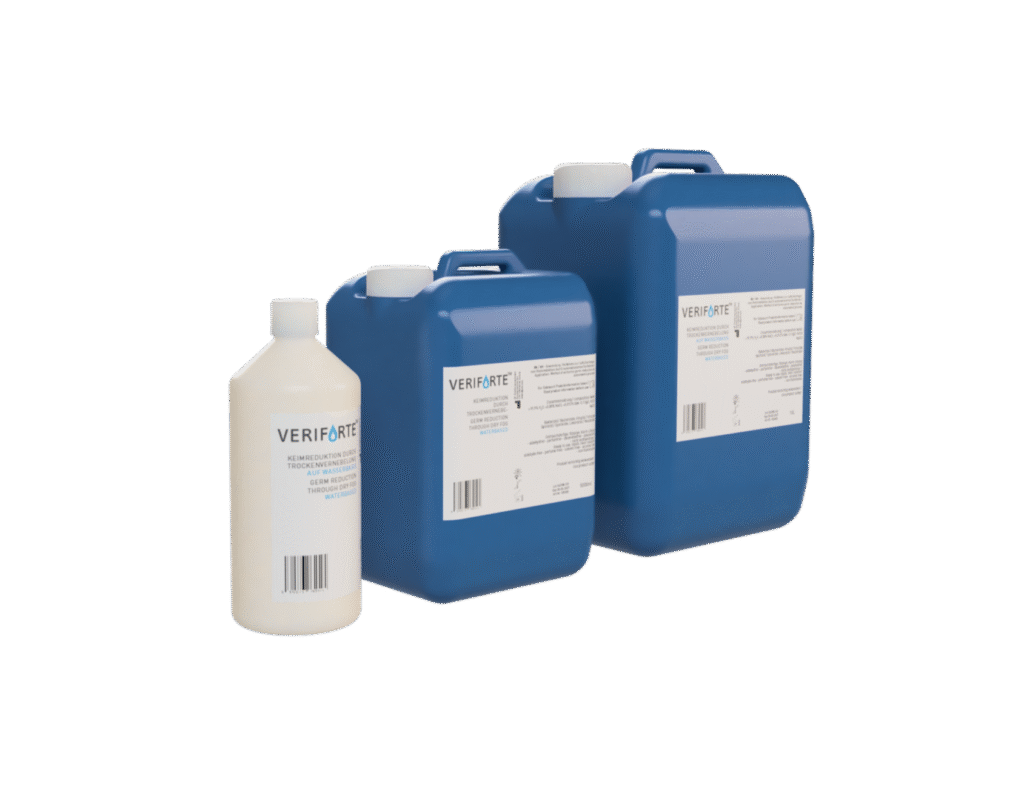 VERIFORTE nutzt hypochlorige Säure (HOCl), die Mikroorganismen oxidativ zerstört. Unterschiedliche Konzentrationen werden für Flächendesinfektion und Keimreduktion eingesetzt.